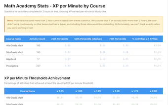 إحصائيات أكاديمية الرياضيات هي إضافة مجانية لمتصفح Chrome مصممة لتعزيز تجربة أكاديمية الرياضيات للآباء والمعلمين من خلال توفير تحليلات مفصلة حول رحلة تعلم الرياضيات للطفل. تقوم هذه الأداة بجلب جميع بيانات النشاط ذات الصلة من حساب أكاديمية الرياضيات، مما يسمح للمستخدمين بتصديرها بتنسيقات JSON أو CSV لمزيد من التحليل. تشمل الميزات الرئيسية رؤى الأداء مثل XP لكل دقيقة، والوقت المستغرق في أنواع الدورات المختلفة، وتفاصيل النسب المئوية، مما يضمن فهمًا شاملاً لتقدم الطالب.